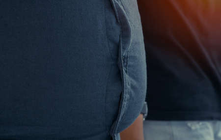 man with overweight.obese man have excessive belly fat; overweight fatty belly of man; man diet lifestyle concept to reduce belly and shape up healthy stomach muscle