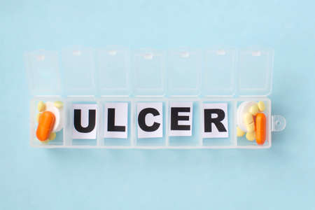 The word ulcer is in the pill box. Medical concept