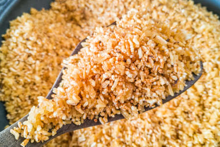 Ground rice, Application of cooked rice, roasted with fire, a dark yellow fragrant