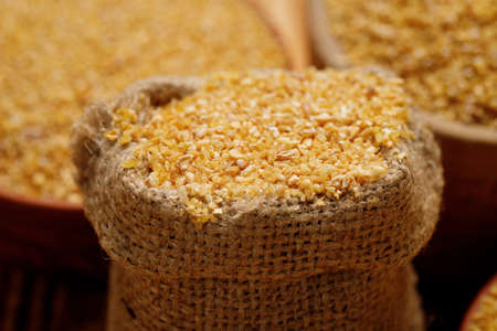 Traditional Turkish dry raw bulgur cereals. Background Close up