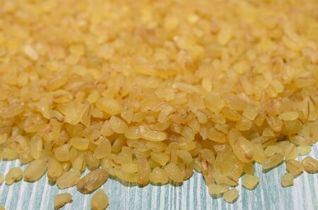 Bulgur groats from crushed wheat close-up. Bulgur background. Durum wheat top view.