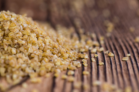 Raw Bulgur (on wooden background) as detailed close-up shot