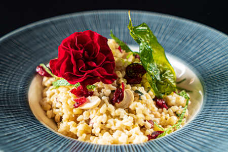 vegan risotto with dried berries and nuts