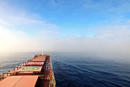 Fog at sea limits the visibility of ships during navigation. Pacific ocean