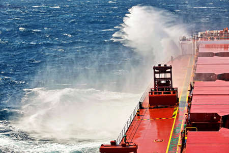 The movement of the vessel against the waves during a heavy storm. North Pacific ocean.
