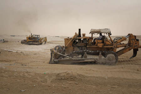 graders at work in Sand field, excavator in land work