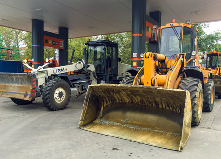 Voronezh, Russia - September 19, 2019: Road equipment stands at the gas station