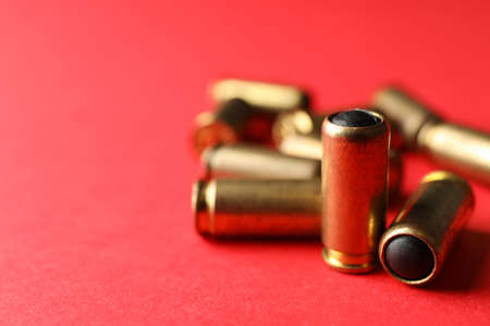 Rubber bullets on red background, close up