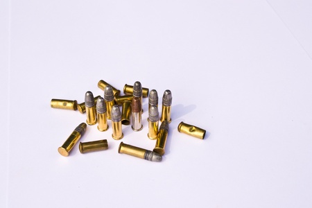 .22 caliber Long rifle Rimfire Ammunition with smokeless powder on white