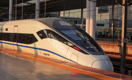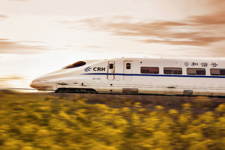 Wuxi- China - November 5,2019:High speed train of High-speed rail (HSR) network in China is the world's longest high speed railway network.