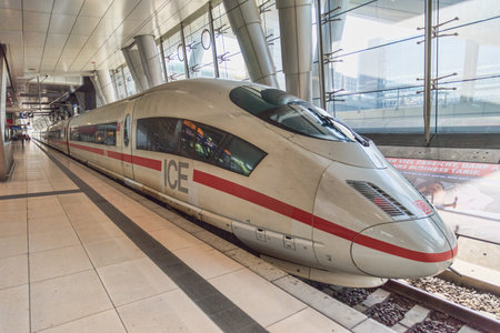 ICE 3 high-speed train at Frankfurt Airport long-distance station. Germany