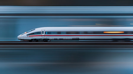 White modern bullet train racing through a futuristic tunnel with motion blur and light trails, symbolizing rapid transit, innovation, momentum, and advanced electric rail infrastructure