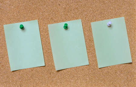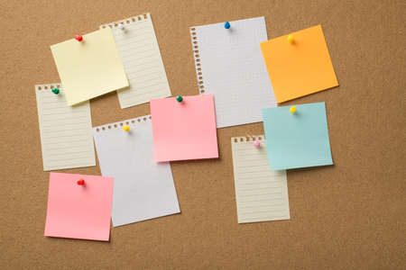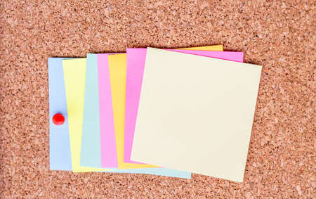 Paper note pin on cork board. Blank notes for add text message. sticker note.