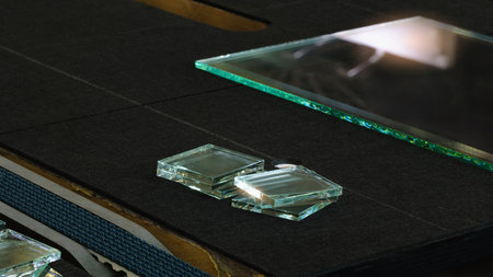 Broken glass background for your images isolated on white. Many large glass fragments scattering from a hammer as a concept of violence
