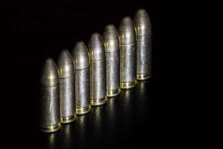 metal cartridges for hunting automatic weapons on a black background with a reflection