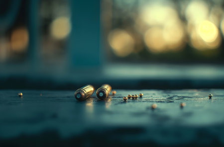 Metal bullet casings shimmer softly under warm light in a rich earthy setting.
