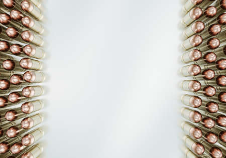 Frame and border from cartridges of pistols ammo, template elements for your certificate and diploma. 3d illustration render.