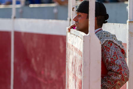 Linares, SPAIN - August 28, 2014: The Spanish Bullfighter Sebastian Castella totally focused moments before leaving to fight in Bullring of Linares, Spain