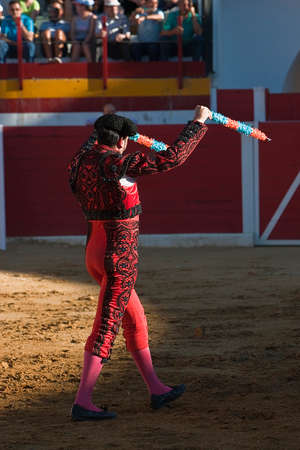 Banderillero, the torero who, on foot, places the darts in the bull, the banderillas is Brightly-coloured darts placed in the bull
