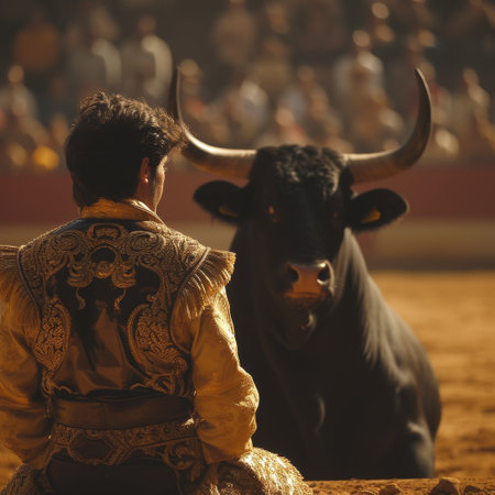 a brave matador facing a fierce bull
