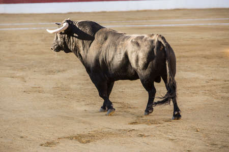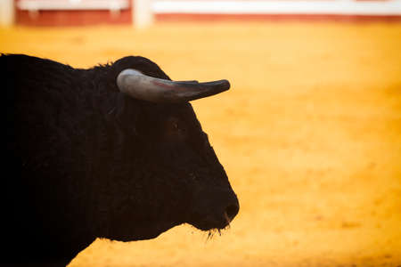 Fighting bull in the arena. Bullring. Toro bravo. Spain. Horizontal
