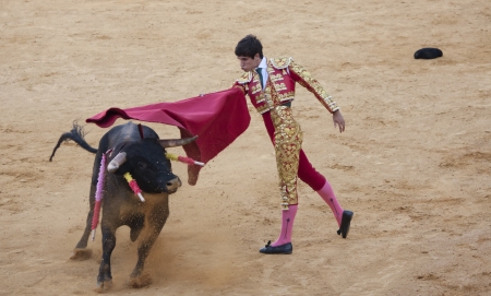 BARCELONA - JUNE 6: Morante de la Puebla in action during a bullfight, typical Spanish tradition where a bullfighter kills a bull, on June 6, 2010 in Barcelona, Spain