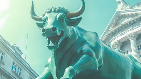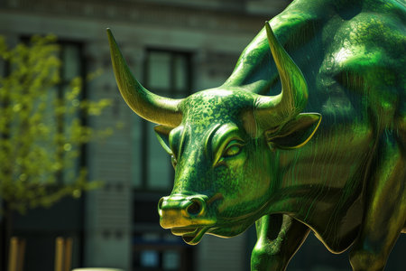 This abstract image features a green bull representing strength and upward growth in financial markets, emphasizing investment opportunities and market trends.