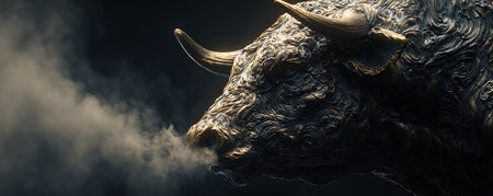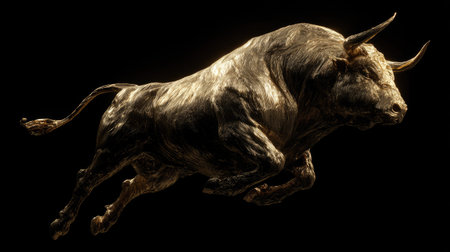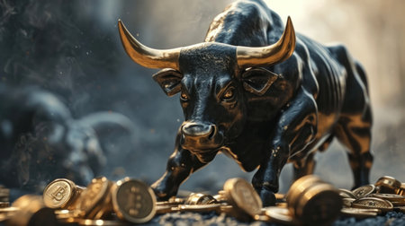 AI generated illustration of golden Bull represents aggressive financial optimism and prosperity.