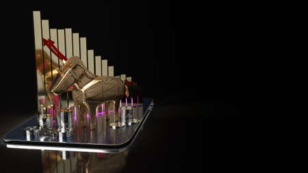 gold unicorn and chart on tablet for start up business content 3d rendering.