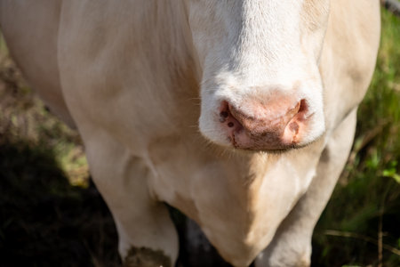Close up of the nose of a white cow