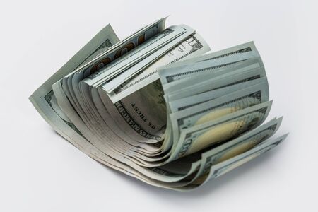 Stack of hundred dollars isolated on white