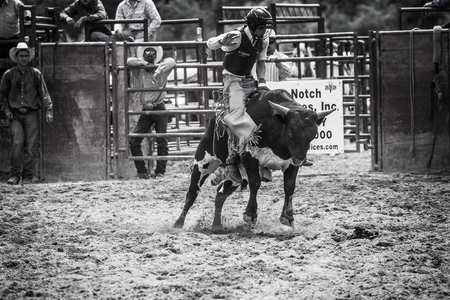 Bull riding action at the Cottonwood Rodeo in northern California on May 8th, 2016.