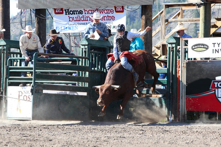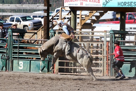 MERRITT, B.C. CANADA - SEPTEMBER 3: Cowboy during bull riding event at The 52nd Annual Pro Rodeo September 3, 2011 in Merritt British Columbia, Canada