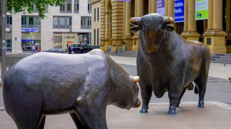 The bull and the bear at Frankfurt Stock Exchange - FRANKFURT, GERMANY - JULY 12, 2022