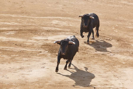 Fighting bulls in the arena. Bullring. Toro bravo. Spain. Horizontal