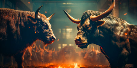 Financial and business Bull vs bear concept trader background - Ai Generated