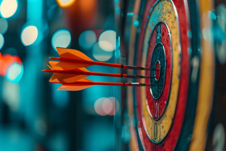 A colorful target with arrows hitting the bullseye, symbolizing precision and success, set against a soft blurred background, perfect for business promotion