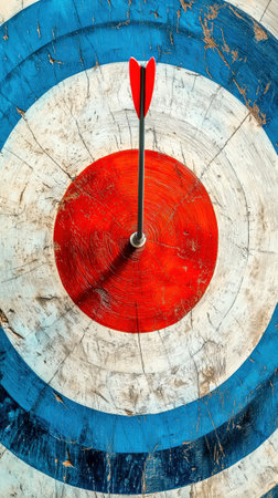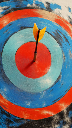A vibrant image showcasing an arrow hitting the center of a painted target, emphasizing achievement and focus. Ideal for concepts of success and motivation.