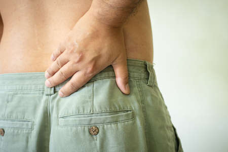 Man has Diarrhea Holding his Butt. Guy to hold with a hand a sore ass. Itching in the anus. Pain in the rectum due to cracks