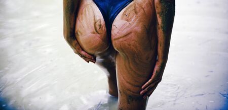 Dirty ass female in panties. Woman in the mud bath. Luxury ass. Huge mud buttocks. Sensual attractive mud womans ass. Spa procedure and body care. Enjoying mud.
