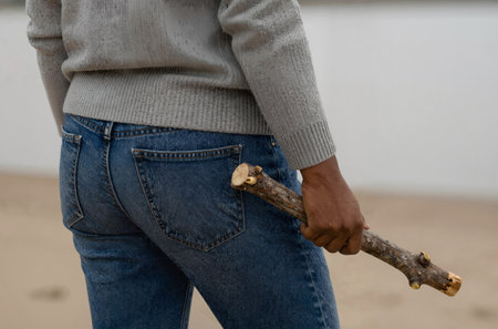 Closeup of human with hands palms on buttocks ass in jeans trousers.
