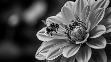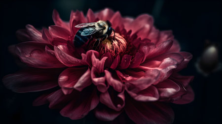 The result of a professional shooting of a flower with a vibrant and detailed petals and a bee on it