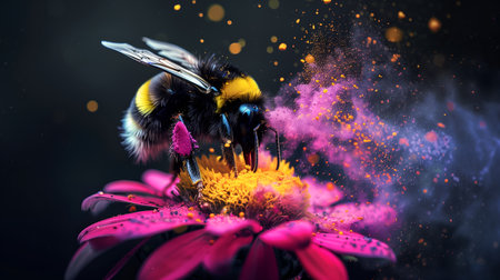 A detailed close-up view of a bee collecting nectar from a vibrant flower, showcasing the beauty of nature and the essential role of pollinators in our ecosystem.