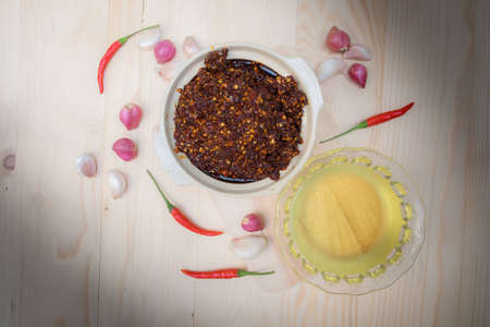 A portrait of Sambal matah, Bali traditional sauce. indonesian condement. close up