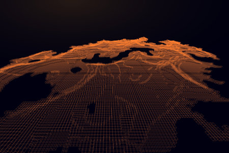 Terrain big data visualization. Futuristic map infographic. Complex topographical data graphic visualization. Abstract data on elevation graph. Monochrome geographical data image