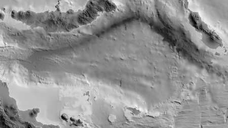 Grayscale map of the area around the Woodlark tectonic plate. 3D rendering