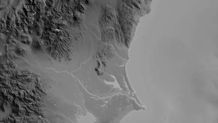 Ibaraki, prefecture of Japan. Grayscaled map with lakes and rivers. Shape outlined against its country area. 3D rendering