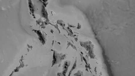 Quezon, province of Philippines. Grayscaled map with lakes and rivers. Shape outlined against its country area. 3D rendering