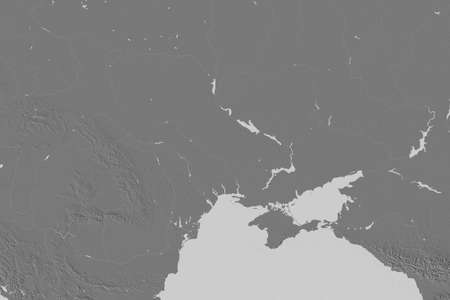 Extended area of Ukraine. Bilevel elevation map. 3D rendering