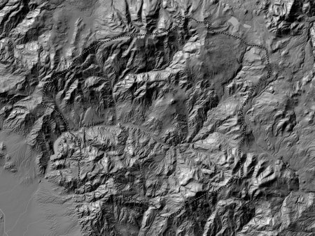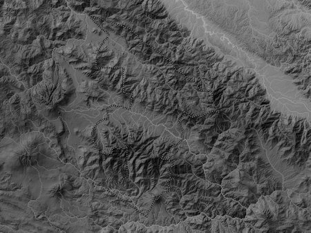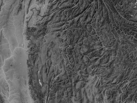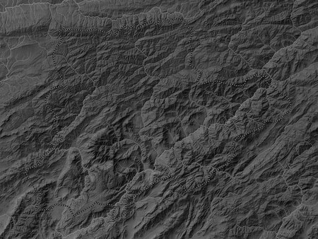 Daykundi, province of Afghanistan. Grayscale elevation map with lakes and rivers